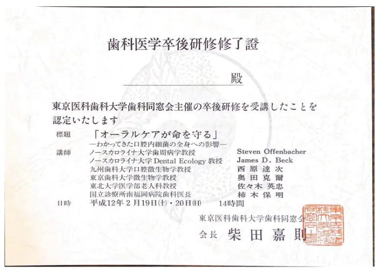 | 平成6年 | 奥羽大学歯学部 卒業 |